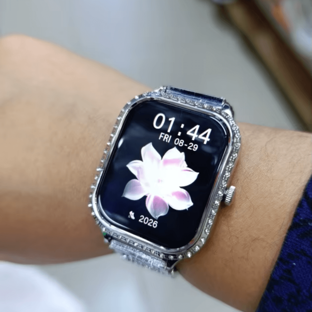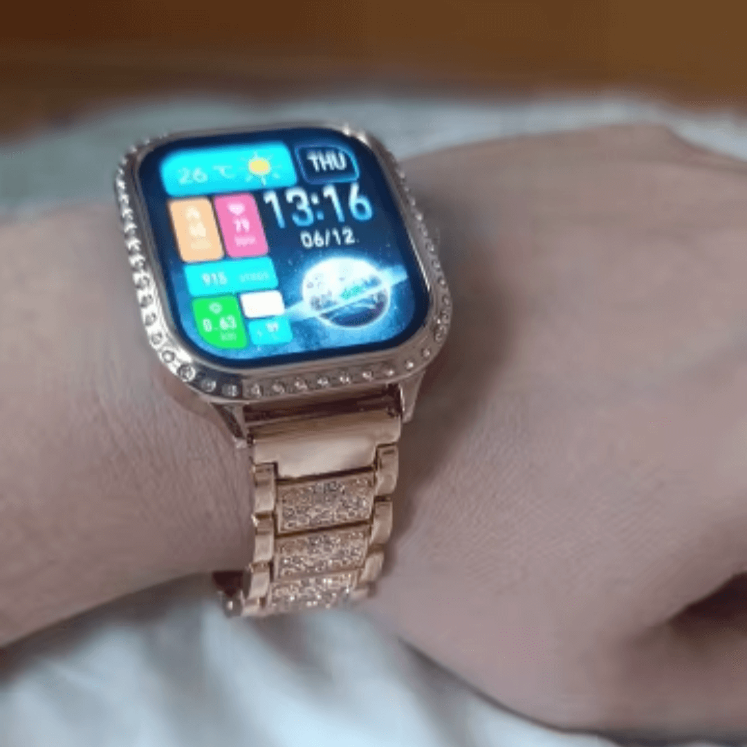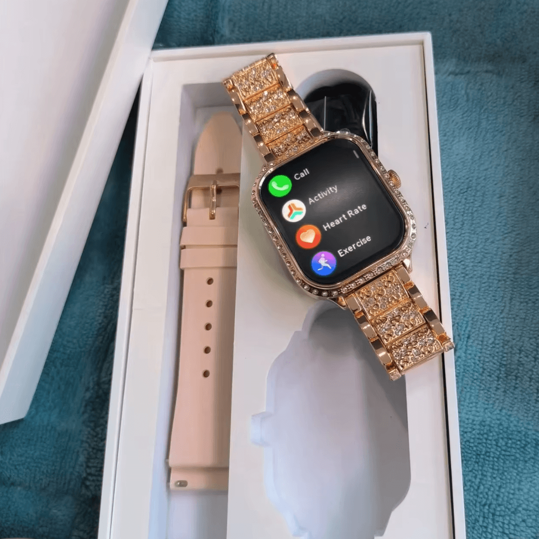 Turn heads with a smartwatch that looks like fine jewelry. With a slim diamond-studded bezel, over 200 customizable watch faces, and straps to match any outfit, Glitzias is your new favorite accessory, chic for work, the gym, or a night out.